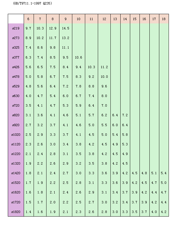 螺旋鋼管水壓值一覽表