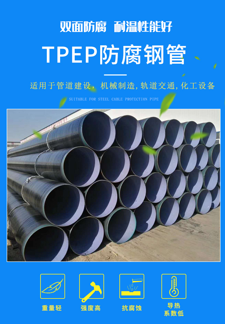 涂層厚度:PE(改性聚乙烯)涂層厚度為400um—1000um,EP(環(huán)氧樹脂)噴涂厚度為100um-400um;