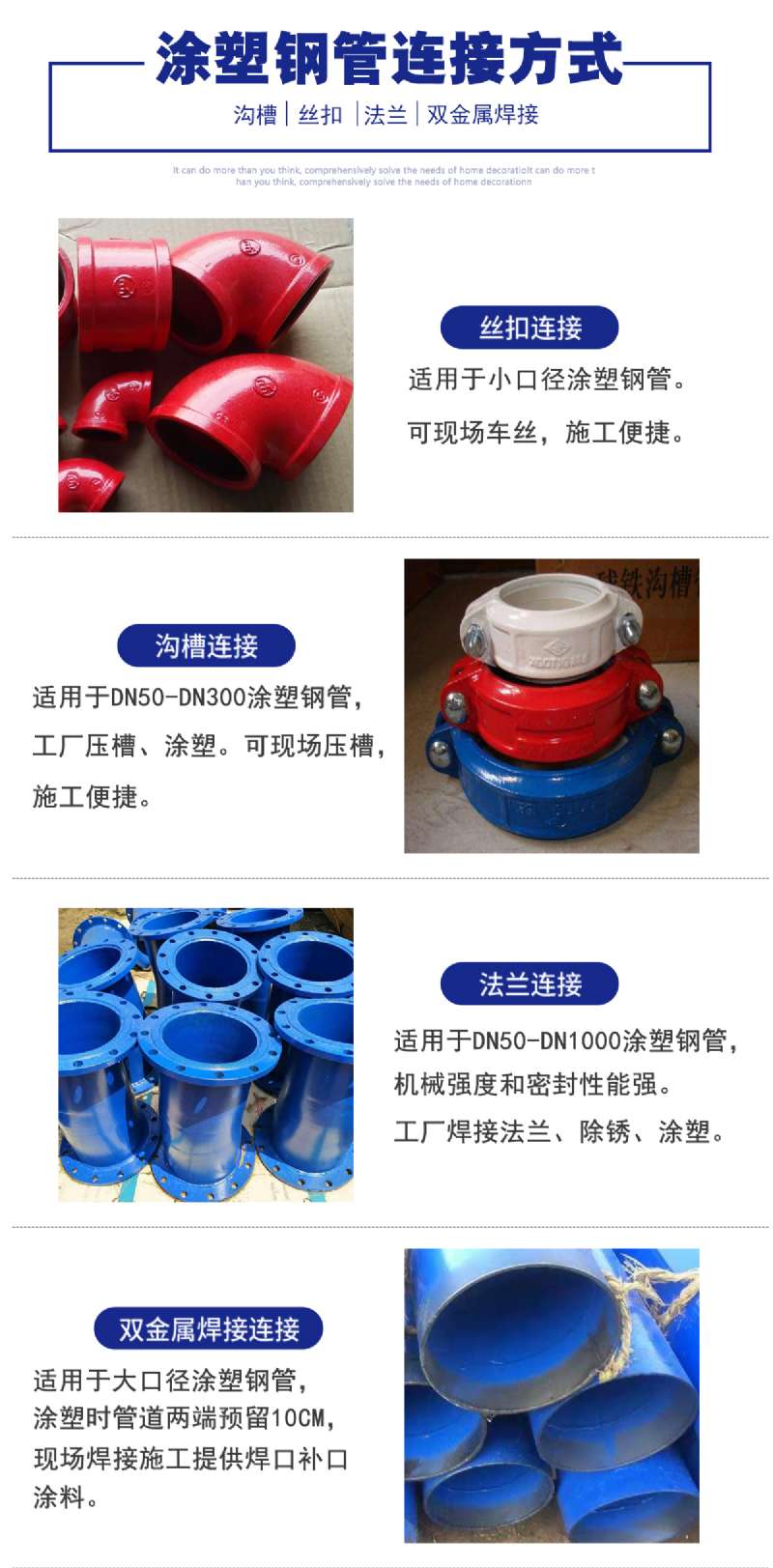 、京滬鐵路穿插過境,國內(nèi)運(yùn)輸非常便當(dāng);此外距天津新港僅200公里,為出口事務(wù)提供了更為便當(dāng)?shù)臈l件。豐厚的地域資本,優(yōu)勝的區(qū)位條件,使我廠迅速發(fā)展成為集管件研發(fā)、開發(fā)、出產(chǎn)于一體的省科技公司、國內(nèi)大型專業(yè)管業(yè)制造廠。公司主要生產(chǎn)銷售產(chǎn)品:涂塑鋼管、內(nèi)外涂塑鋼管,給排水涂塑鋼管,冷水用給排水涂塑鋼管、熱水用給排水涂塑復(fù)合管、鋼塑復(fù)合管,涂塑電纜套管,消防涂塑鋼管、煤礦井下專用涂塑鋼管、熱浸塑電纜涂塑保護(hù)管、襯塑鋼管、包塑鋼管等。